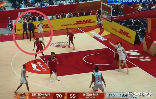 原来,在浙江队进攻时,法莱卡斯的双脚都踏进了内场,而81号裁判就站在他身后,直接给了他一个进线技术犯规。经主裁杨宏锋解释后,法莱卡斯嘴里嘟囔了几句,再也没吭声了,新疆队遂执行技术犯规罚篮。