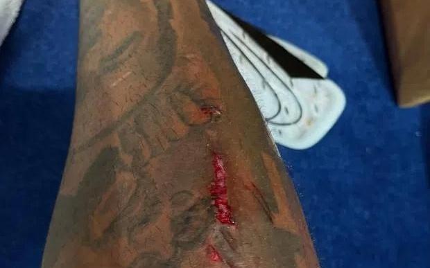 慎入,里斯詹姆斯的小腿在比赛里被划出一道血口子