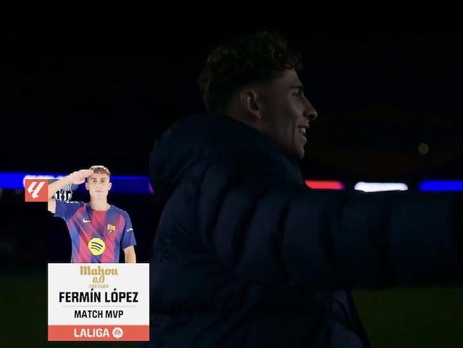 西甲第13轮,巴塞罗那主场4-0大胜毕尔巴鄂竞技,此役打入一球的费尔明当选西甲官方全场最佳球员。