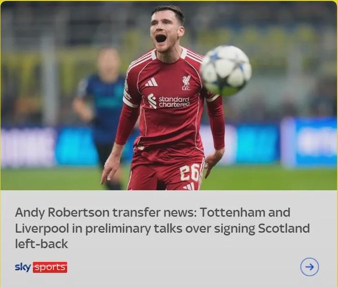 罗马诺表示,热刺已经为罗伯逊提交了官方报价,谈判正在深入进行中。